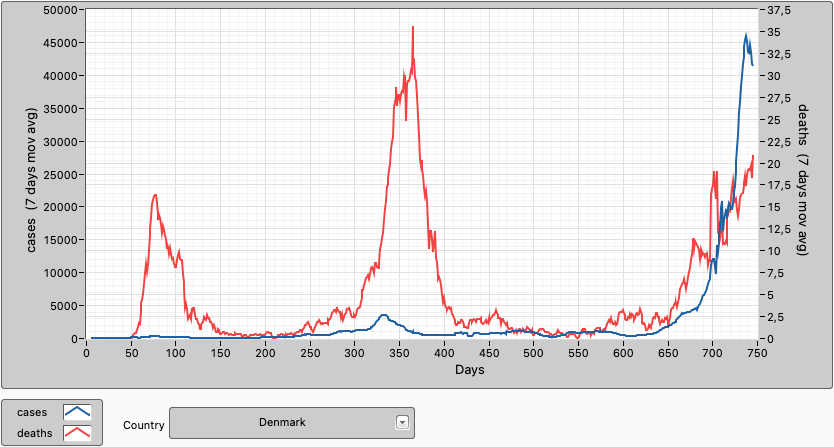 In the UK cases are trending down but deaths are still flat (if we ignore any one-off spikes). 72,4% of the population are fully vaccinated and 78,2% have had at least 1 dose. 55,9% of the population has had a booster shot.