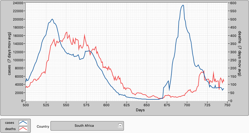 South Africa had 18 deaths yesterday. Cases and deaths are flat. 28,0% of the population are fully vaccinated and 33,4% have had at least 1 dose. 1,1% of the population has had a booster shot.