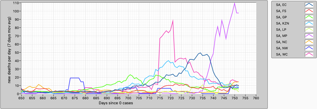 If we look at all the provinces we see that most of the deaths being reported recently are for Mpumalanga.