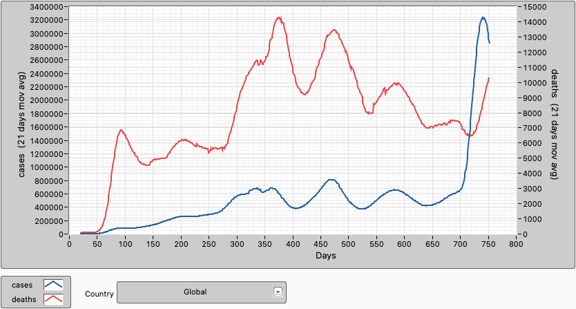 Globally, cases are trending down now and deaths seem to have peaked as well. More than 10.3 billion doses of vaccine have been administered—132 shots for every 100 people worldwide.