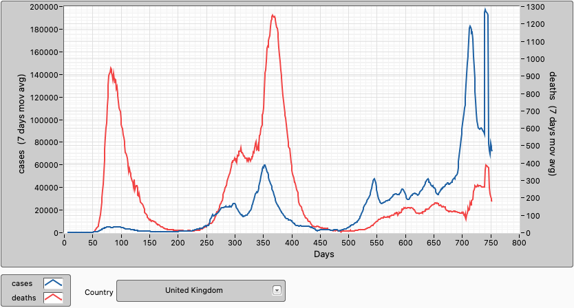 In the UK cases and deaths are trending down now. 72,6% of the population are fully vaccinated and 78,3% have had at least 1 dose. 56,2% of the population has had a booster shot.