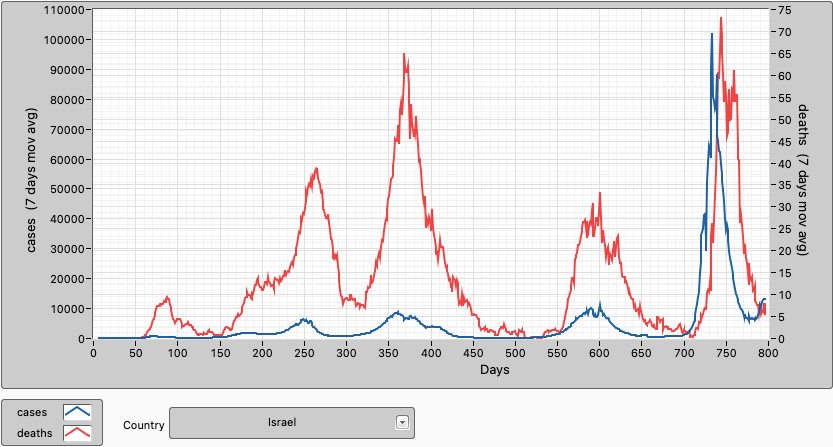 In Israel, cases are trending up again but deaths are still flat. 66,5% of the population are fully vaccinated, 73,3% have had at least 1 dose and 56,7% have had a booster shot.