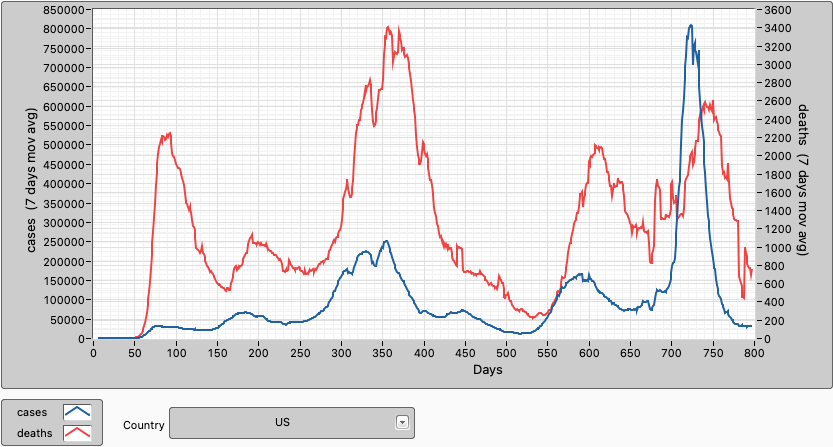 In the US cases and deaths are trending down now. 64,9% of the population are fully vaccinated and 76,2% have had at least 1 dose. 29,0% of the population has had a booster shot.
