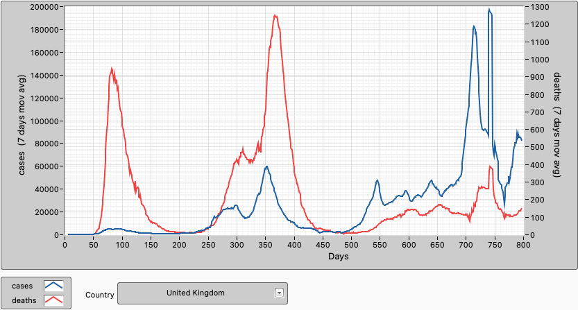 In the UK cases and deaths are slowly trending up again. 73,6% of the population are fully vaccinated and 78,7% have had at least 1 dose. 57,8% of the population has had a booster shot.