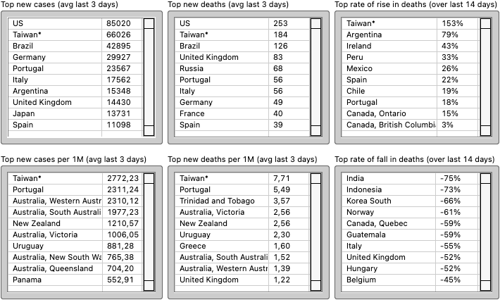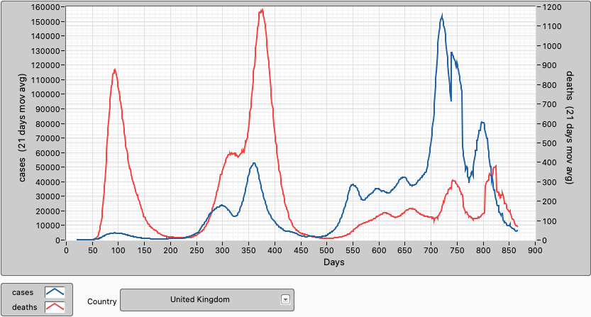 In the UK cases and deaths are trending down.